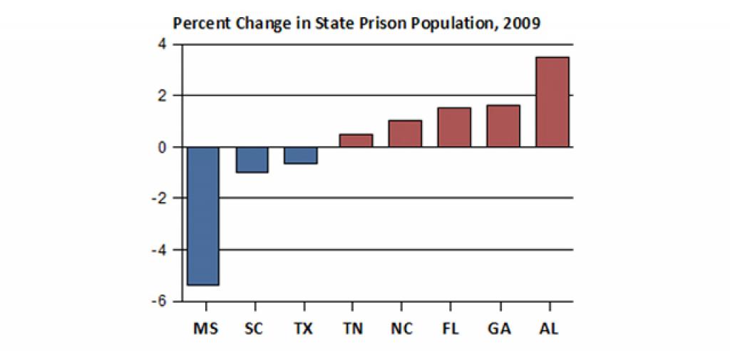 In 2009, Alabama increased its prison population to over 31,000 people. That same period saw the state prison population nationwide decline for the first time in nearly 28 years as states implemented new technology and parole reforms to reduce reliance on incarceration in the face of crippling costs.