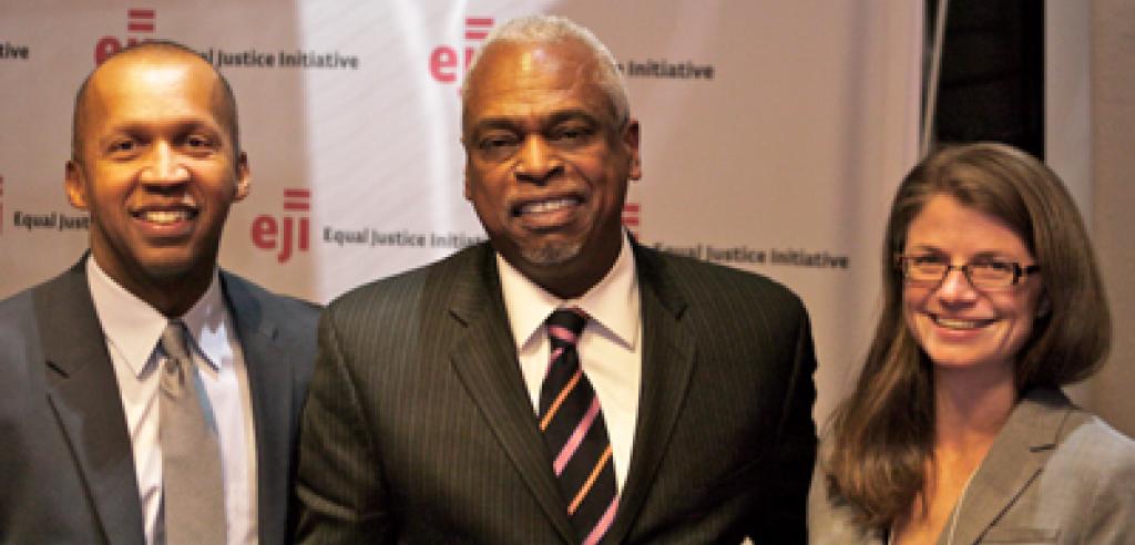 Wade Henderson, center, with Bryan Stevenson and EJI Senior Attorney Angie Setzer