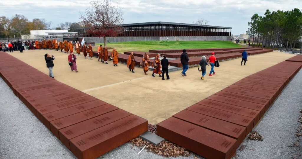 Buddhist monks at the Peace and Justice Memorial Center in Montgomery, Alabama.