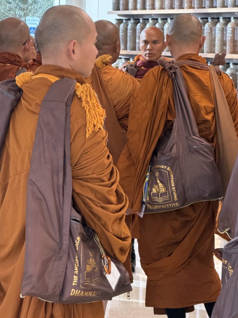 At each stop along the journey, the monks are able to meet and engage with community members. They amassed a large group of onlookers and supporters as they came into Montgomery and went to the National Memorial for Peace and Justice. We invited the monks into the Peace and Justice Memorial Center (across the street) for some light refreshments to help sustain their journey.