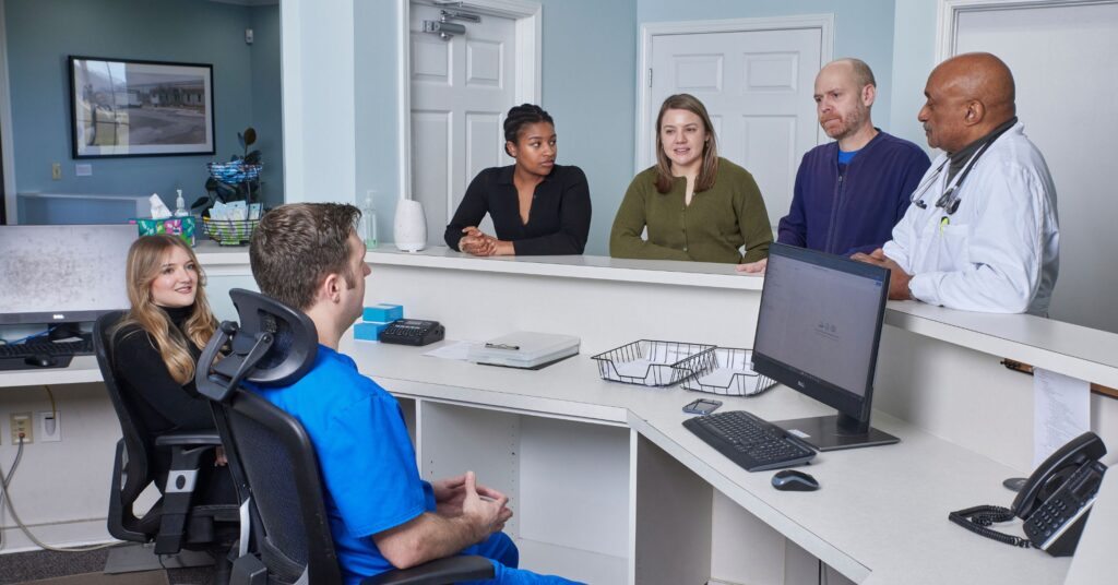 Elizabeth Prophet, Jake Mitchell, Meghan Hunter, Dr. Pam Holtz, Ryan Pratt, and Dr. John Tinglin, from the EJI Health team.